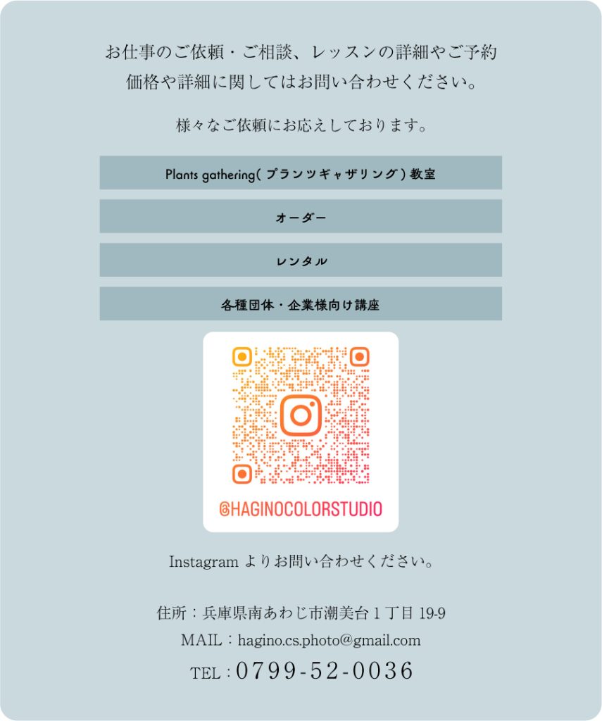 2024 1025 お仕事のご依頼・ご相談 お仕事のご依頼・ご相談、レッスンの詳細やご予約、 価格や詳細に関してはお問い合わせください。 Instagram FARVER FLOWER SHOP 〒656-0521 兵庫県南あわじ市潮美台1丁目19-9 TEL.0799-52-0036 Post Share Hatena Pocket RSS feedly Pin it WEBサイト開設 前の記事
